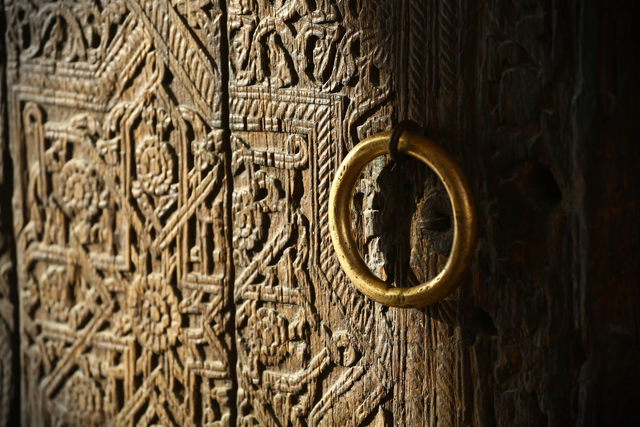 J'aime toujours m'attarder sur les portes en bois. Il y a les colorées, les vitrées, les patinées, les arrondies, les grandes et les sculptées. L'anneau doré rehausse le ciselage du bois. Combien de mains se sont posées sur cet anneau ? Depuis combien d'années cette porte existe-t-elle ?