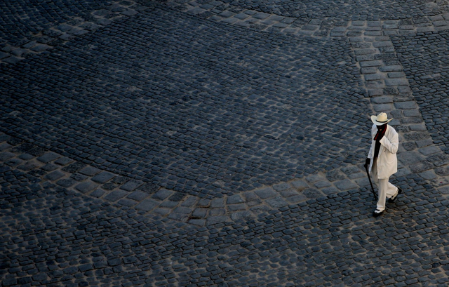 Cet homme seul sur une place de La Havane, dans son costume crème, portant un chapeau et une canne, n'aurait pas été complètement élégant ni complètement cubain sans cet énorme cigare.